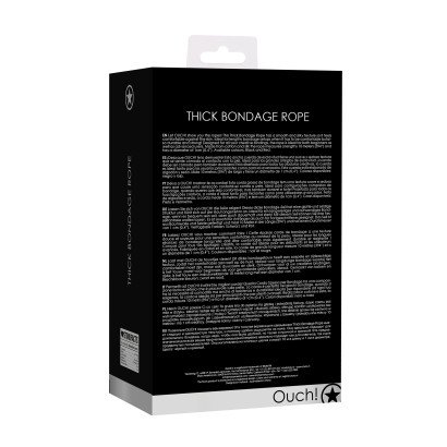 Deixe que a OUCH! lhe mostre as cordas! A Thick Bondage Rope tem uma textura macia e sedosa, por isso é confortável contra a pele. Ideal para configurações de bondage longas que precisam ser confortáveis, mas também durável e forte! Projetada para todas as suas ligações criativas, a corda é ideal tanto para iniciantes quanto para utilizadores avançados. Feita de algodão e seda, a corda mede 10 metros de comprimento e tem 1cm de diâmetro.