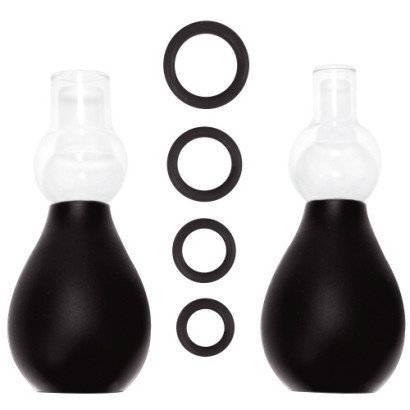 Mantenha os seus mamilos eretos e sensíveis com este kit sugador de mamilos e experiencie um prazer estonteante! Para começar deslize o anel de borracha à sua escolha sobre a abertura do sugador e coloque-o sobre o mamilo. Aperte o reservatório de ar até chegar ao resultado desejado. Deslize o anel de borracha e coloque-o ao redor do seu mamilo para mantê-lo erecto e sensível. Repita essas etapas com o outro mamilo. Poderá usar também no clitóris. Para obter mamilos ainda maiores, use a bomba com a abertura mais ampla.