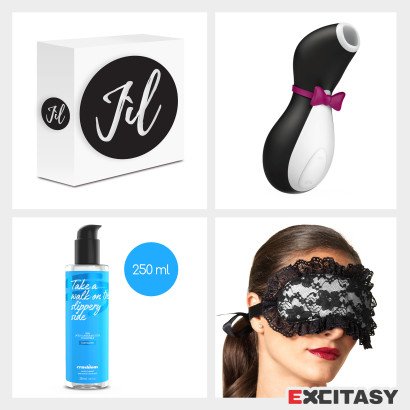 Pack composto por Satisfyer Penguin, venda e lubrificante à base de água Crushious. Tudo apresentado numa discreta caixa fechada. Perfeito para uma prenda surpresa e uma noite muito especial!