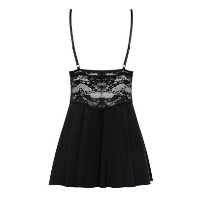 Sinta-se irresistível de forma confortável com esta camisa de noite com copas almofadadas e tanga a combinar. O seu corte faz com que abrace as suas curvas vertiginosamente e a renda trabalhada dá um toque de ousadia.