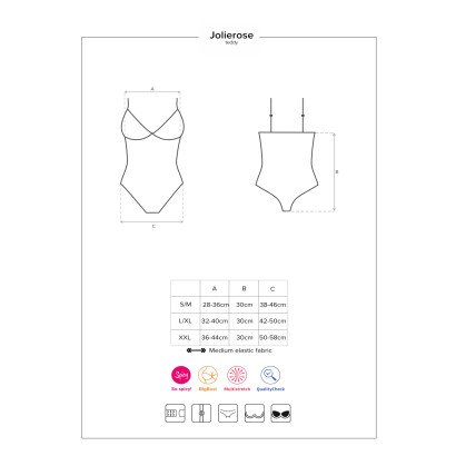 Tentador e sexy? Claro, que sim! Não precisa de uma oportunidade especial para inspirar o seu desejo e o do seu parceiro. O body Jolierose é a combinação perfeita de beleza e picante. Não espere mais - tenha-o hoje e deixe que lhe dê imensos momentos maravilhosos no seu quarto!