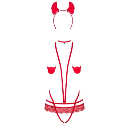Diabo maroto, veio ao lugar certo! Evilia é quente como o inferno e você e o seu parceiro podem desfrutar até explodir em chamas. A gargantilha e os tapa mamilos são os acessórios perfeitos para uma noite apimentada. E aquele body... Uau! As palavras não o podem descrever.