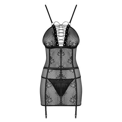 A malha é uma garantia de experiências espetaculares! Olhe para esta junção escaldante de preto e decorações de renda. Sensualidade, chique e um pouco de picante. Oh, sabíamos que ia gostar! Seios muiiiito sensuais e costas lindamente realçadas - com a camisa de noite Basitta vai ficar fenomenal!