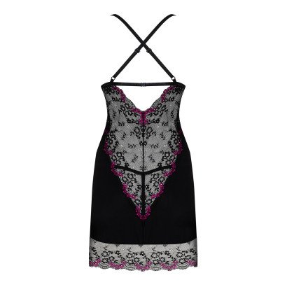 A camisa de noite preta Vanessme é uma combinação ideal de feminilidade subtil com picante refinada. Os detalhes sedutores sob a forma de inserções de renda e um recorte nas costas vão fazê-la sentir-se super sensual, mas também confortável. O Vanessme é feito de material elástico que garante um elevado conforto de utilização.