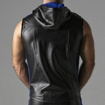 Capuz sem mangas, feito do mais fino tecido elástico de couro.