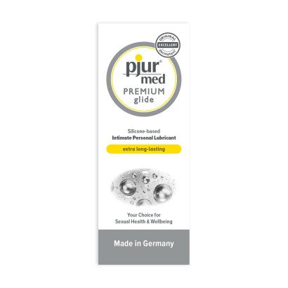 PJUR MED PREMIUM GLIDE é um lubrificante à base de silicone para uma lubrificação de longa duração, suave e muito sedosa. Indicado para pele sensível, este lubrificante é altamente concentrado e apenas algumas gotas são necessárias. Sem conservantes. Este lubrificante aumenta a hidratação da pele e a sua elasticidade e é compatível com a pele e com as membranas mucosas. Dermatologicamente testado.