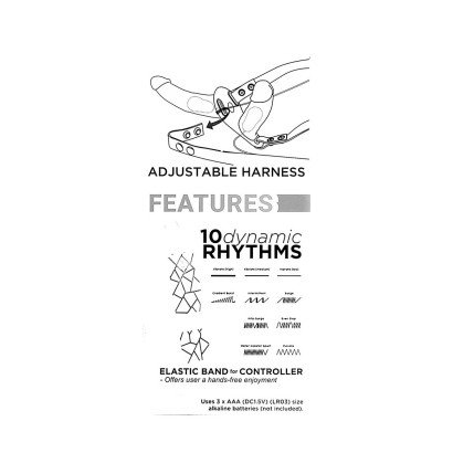 Ambos os vibradores têm grandes glande, veias pronunciadas e 10 modos de vibração que podem ser controlados com o telecomando através de um fio. O telecomando pode ser colocado no pequeno laço do arnês para que as mãos estejam livres para fazer outras coisas. Existem 12 furos no arnês de modo a que a circunferência possa ser ajustada de 78 cm a 108 cm. O cordel tem 96 cm de comprimento e pode ser ajustado para servir. Por favor, encomendar pilhas separadamente: 3 x Micro/AAA.