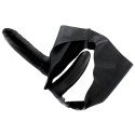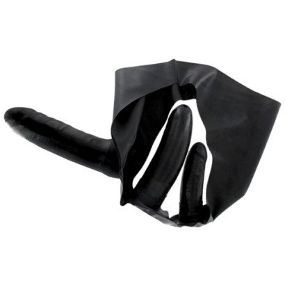 Apresenta 3 dildos pretos, onde dois deles são internos e são para a pessoa que usar o strap-on, um é vaginal e o outro anal, o terceiro é externo e será para penetrar o seu parceiro.